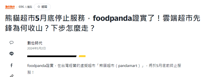 所以我們可以看到熊貓在5月底前將終止這項服務,或許也是去掉虧損的部門,讓熊貓可以有更好的議價空間。